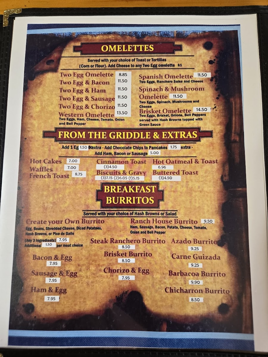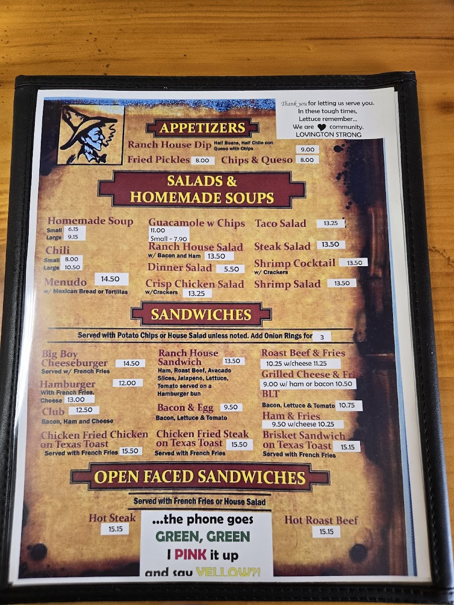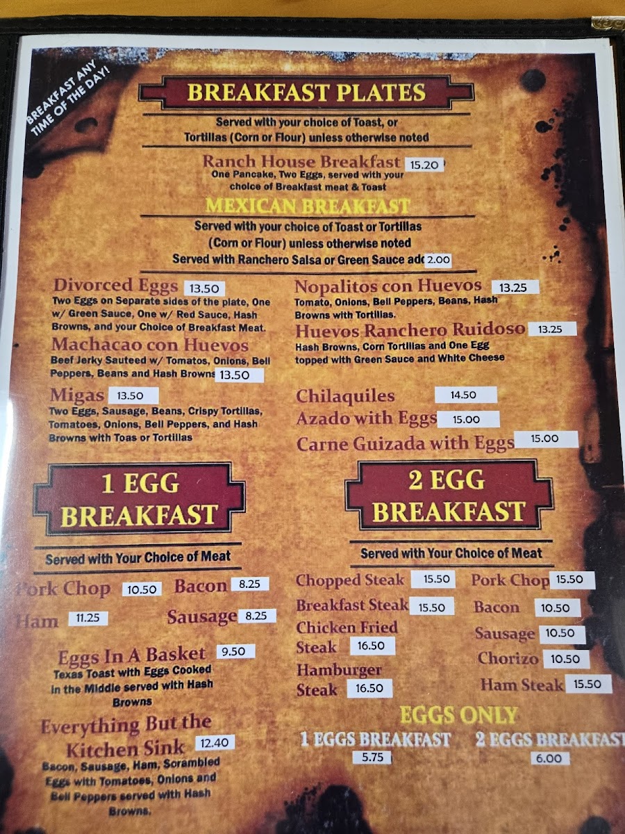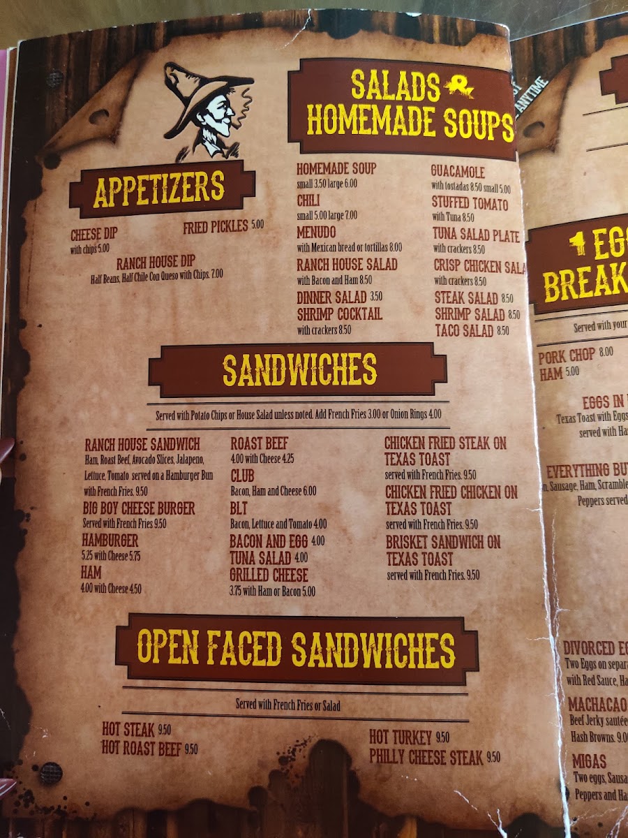 Ranch House Restaurant Menu