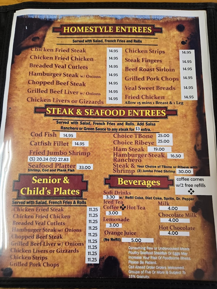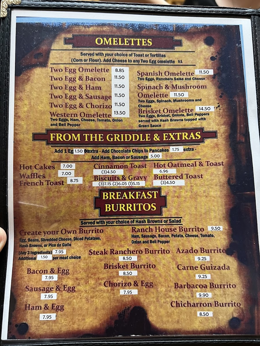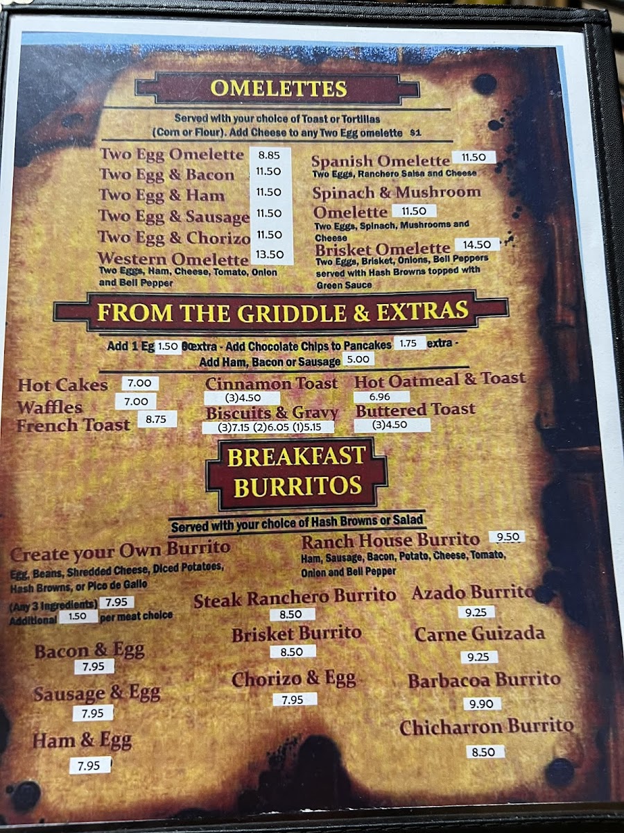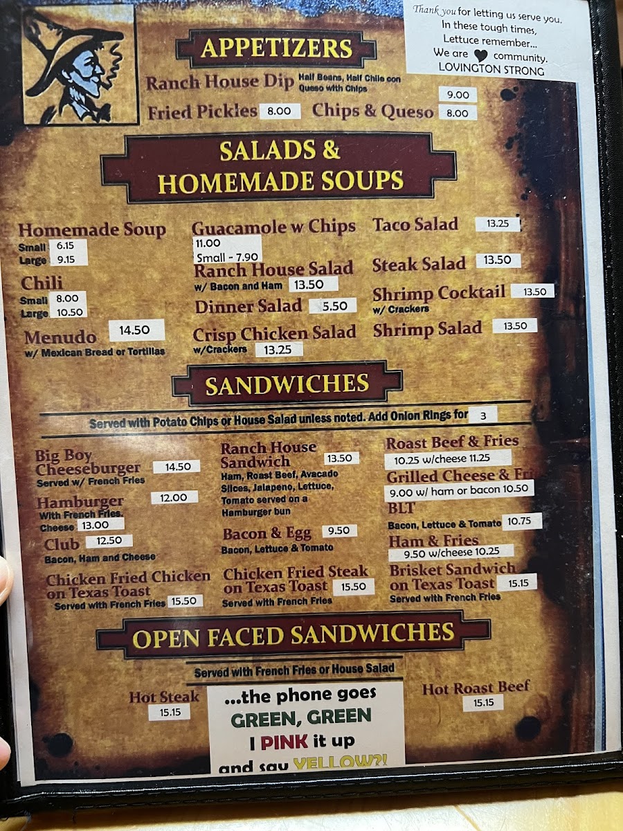 Ranch House Restaurant Menu